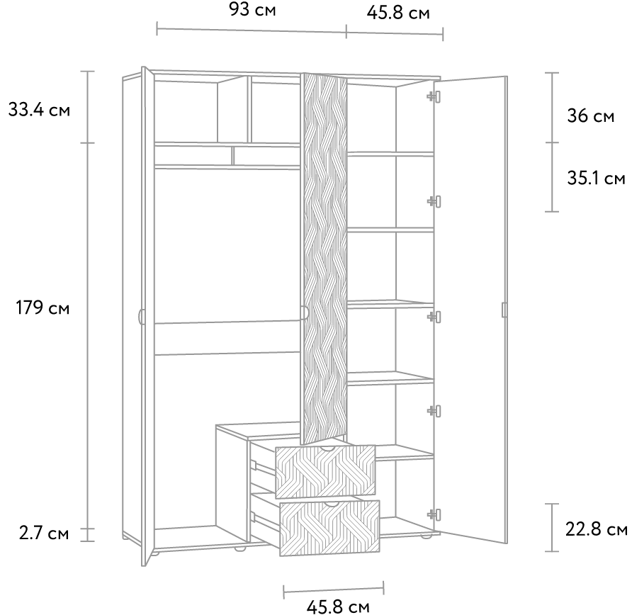 Для устойчивости изделия, рекомендуется прикрепить его к стене с помощью мебельного навеса, который присутствует в комплекте. Крепежные средства не прилагаются, для подбора подходящего крепежа рекомендуем обратится в специализированный магазин.