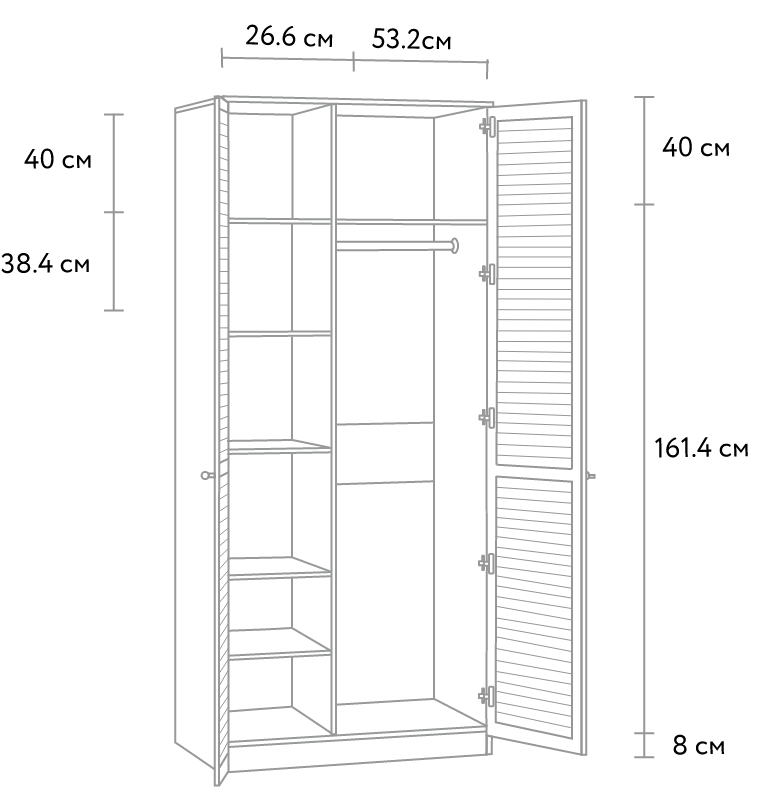 Классическая конструкция с двумя распашными дверцами, привлекательные фасады и функциональное внутреннее наполнение – шкаф серии Монмарт-2 станет незаменимым в современной гостиной, спальне или прихожей.
