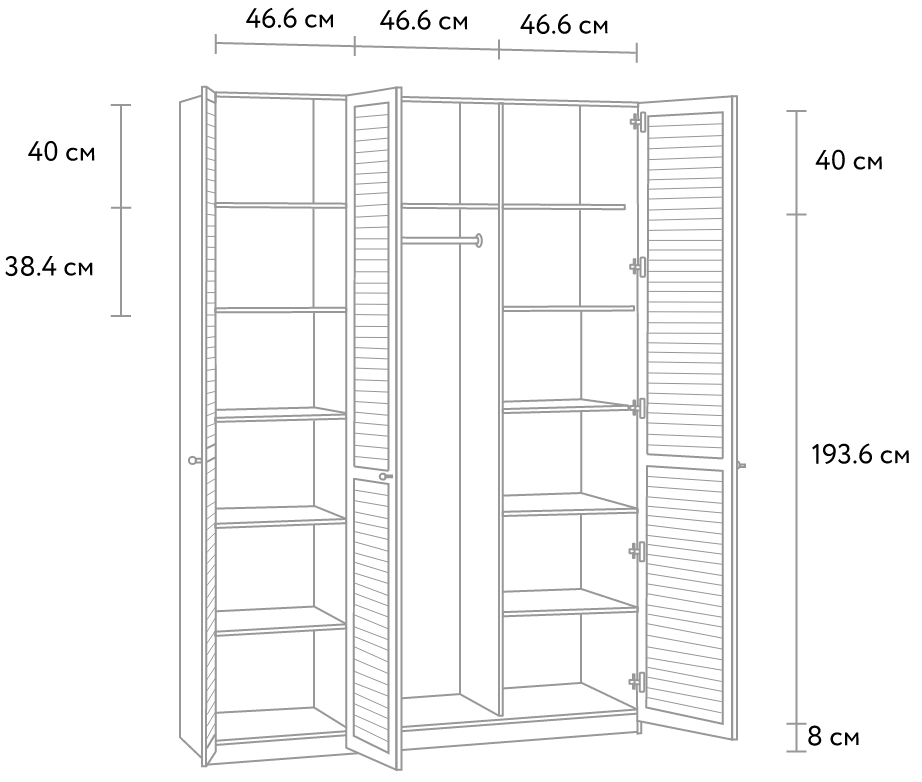 Классическая конструкция с тремя распашными дверцами, привлекательные фасады и функциональное внутреннее наполнение – шкаф серии Монмарт-3 станет незаменимым в современной гостиной, спальне или прихожей.