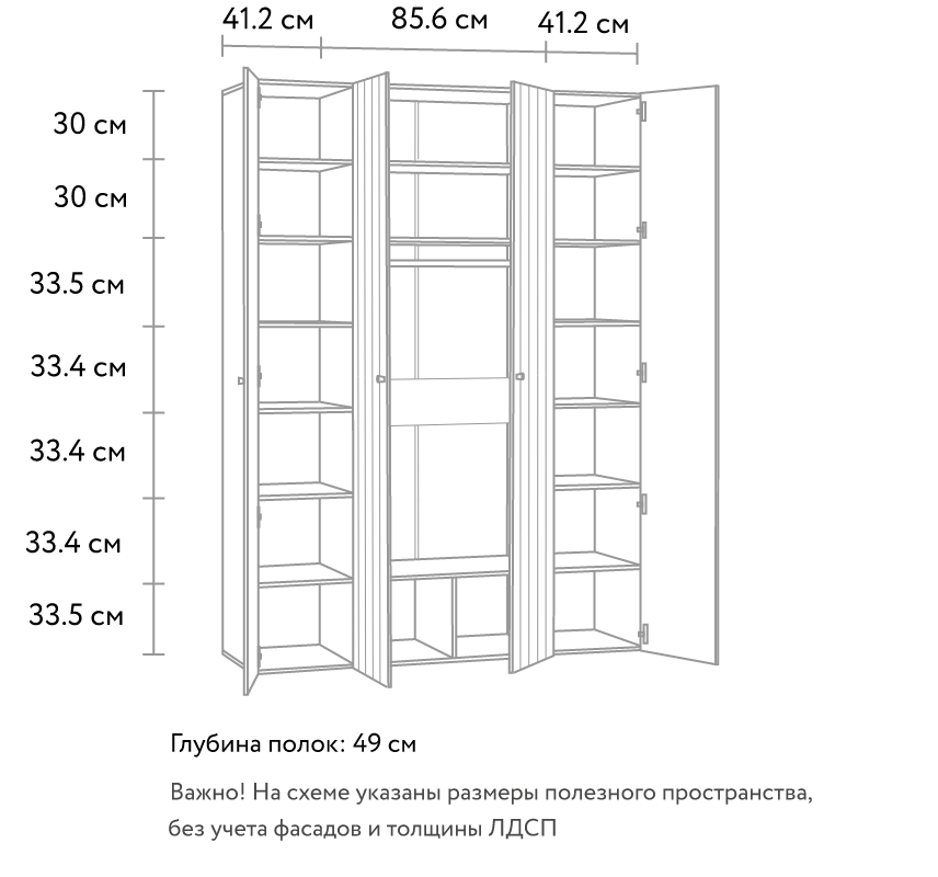 На дополнительных схемах указаны размеры полезного пространства системы хранения.
