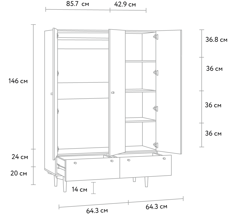 Распашной шкаф Орланд-3 Gene-2 Wood
