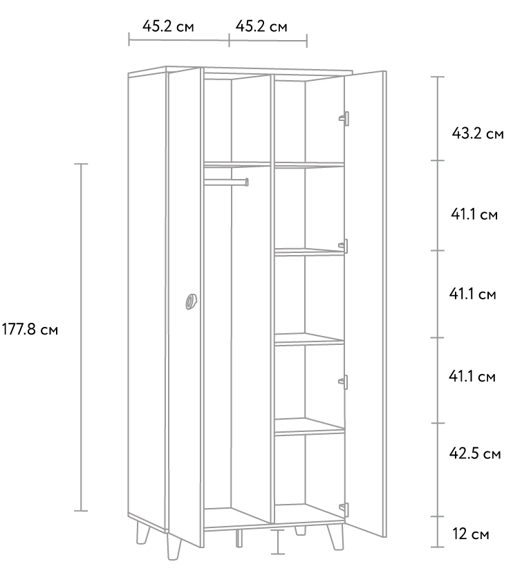 Размеры: Длина 90 смхШирина 58 смхВысота 221 см