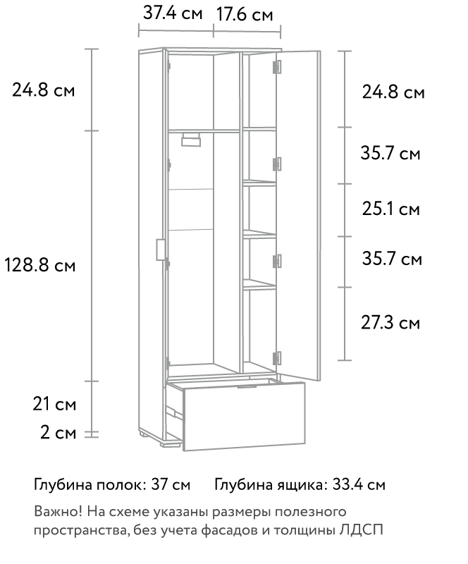 Отличный удобный и вместительный шкаф.  Менеджер всё уточнил и рассказал по доставке и гарантии. Ребята на доставке тоже отлично сработали. Спасибо!