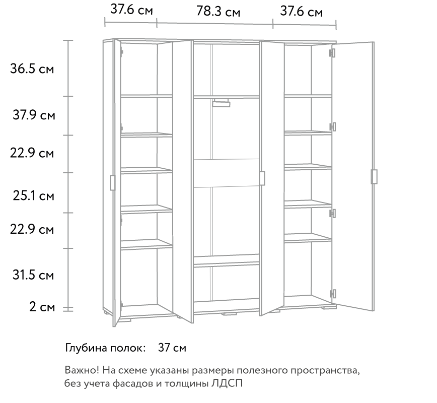 Шкаф супер! Выбрали свою конфигурацию и он отлично вписался в комнату. К доставке тоже вопросов нет, все пришло без задержек и повреждений. Собрали сами легко и быстро, так как есть понятная схема