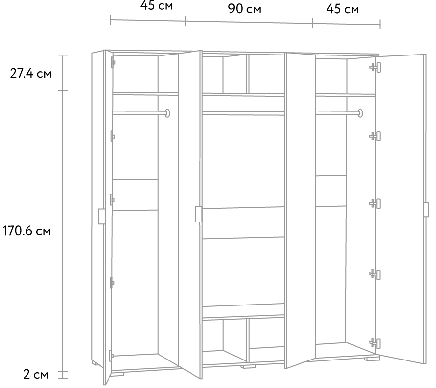 Шкаф супер! Выбрали свою конфигурацию и он отлично вписался в комнату. К доставке тоже вопросов нет, все пришло без задержек и повреждений. Собрали сами легко и быстро, так как есть понятная схема