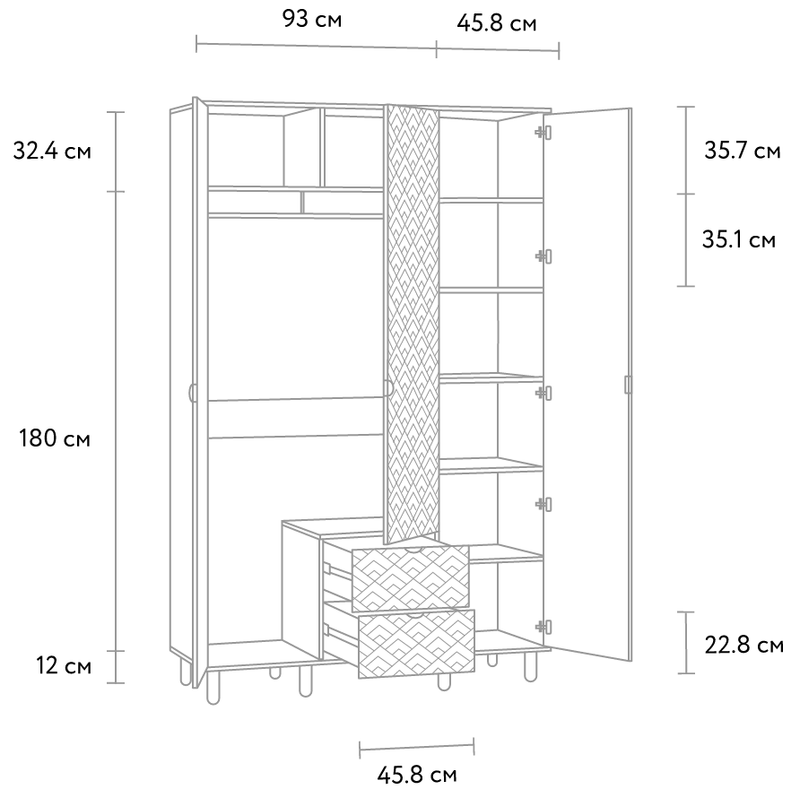На дополнительных схемах указаны размеры полезного пространства системы хранения.