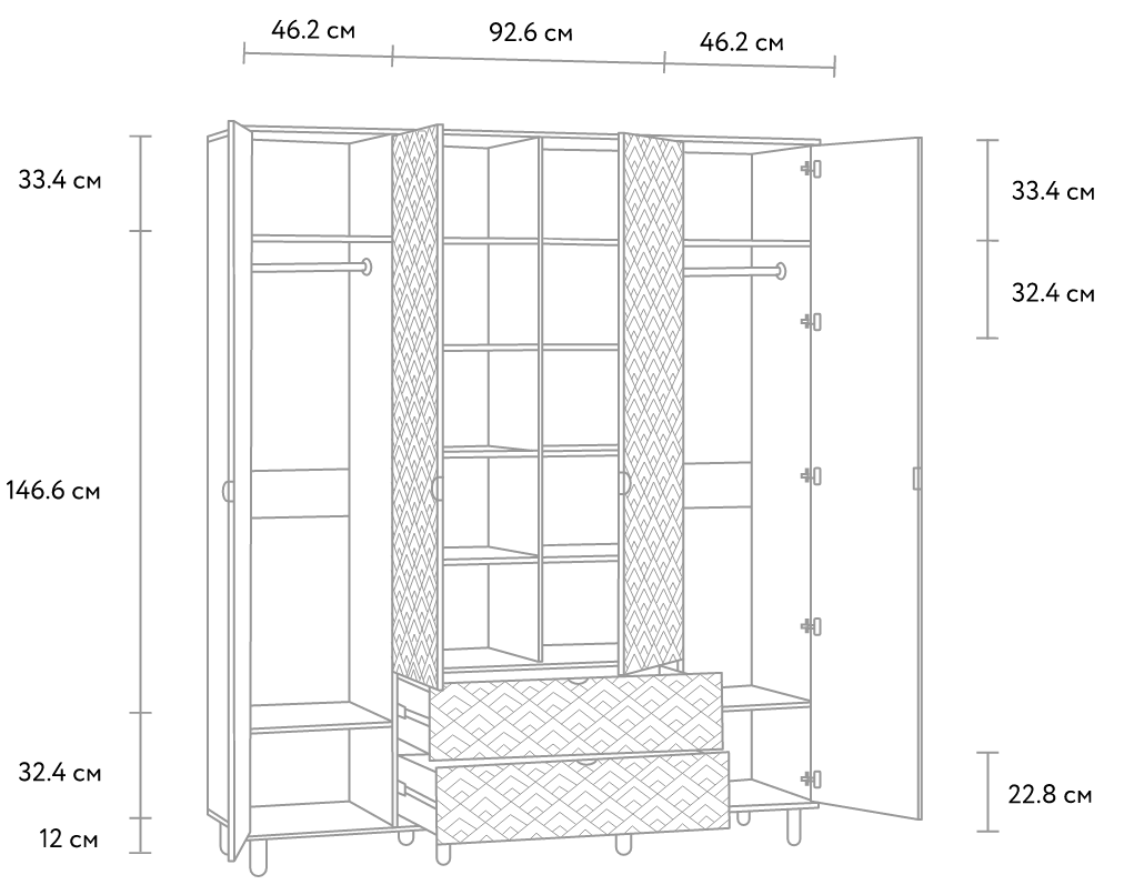 На дополнительных схемах указаны размеры полезного пространства системы хранения.