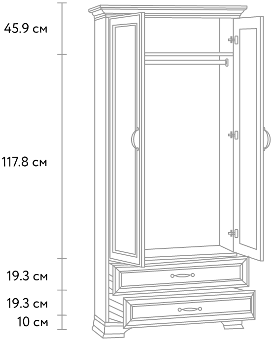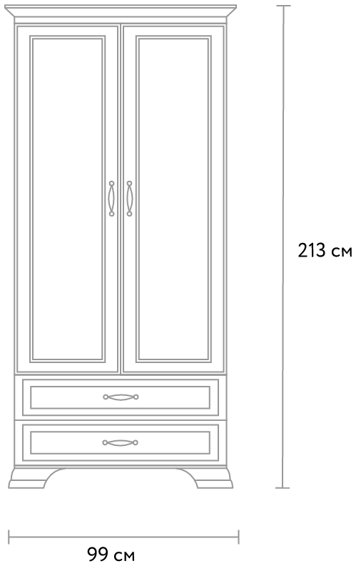 Шкаф «Тиффани» сочетает в себе элегантность, симметрию, универсальный дизайн. Вместительная модель систематизирует хранение одежды, обуви, аксессуаров и спрячет за глухими дверцами все, что хочется скрыть от посторонних глаз.
