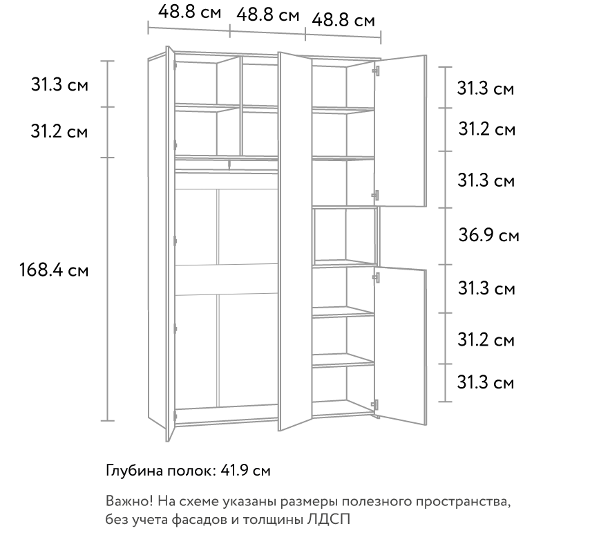 ВАЖНО! При глубине шкафа-купе менее 60 см / распашного шкафа менее 50 см, устанавливается выдвижная штанга.