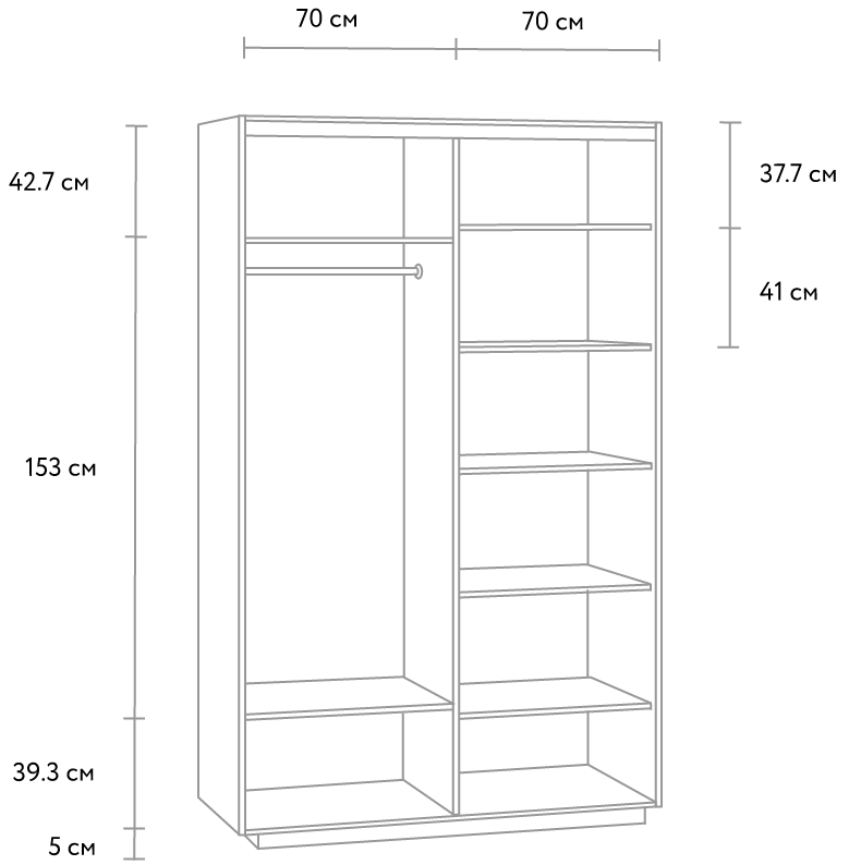 Шкаф-купе «Орлеан» – это вместительная система для хранения одежды, обуви, предметов гардероба и других, самых разных вещей. Массивное основание с текстурой дерева и большие зеркальные фасады станут прекрасным дополнением любого интерьера. За дверцами вас ждет продуманное внутреннее наполнение: глубокие полки и отдельный отсек со штангой для вешалок.