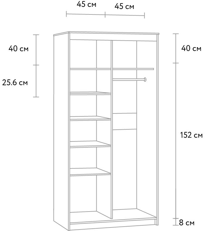 ВАЖНО! При глубине шкафа-купе менее 60 см / распашного шкафа менее 50 см, устанавливается выдвижная штанга.