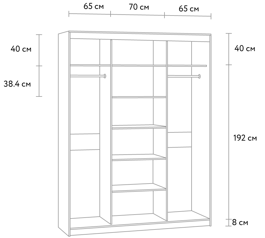 Шкаф-купе «Тебар-3» – элегантный и надежный помощник в компактном хранении одежды и домашних вещей. Вместительные полки, прочная штанга и продуманная организация модели легко справятся с большими нагрузками. А простая система раздвижных дверей выгодно сэкономит место перед шкафом и откроет доступ к вещам с любой стороны. Все самое необходимое всегда под рукой. Наличие ленты-щетки предотвратит попадание пыли внутрь шкафа и обеспечит бесшумное открывание и закрывание створок (данный элемент в базовую комплектацию изделия не входит и приобретается отдельно).