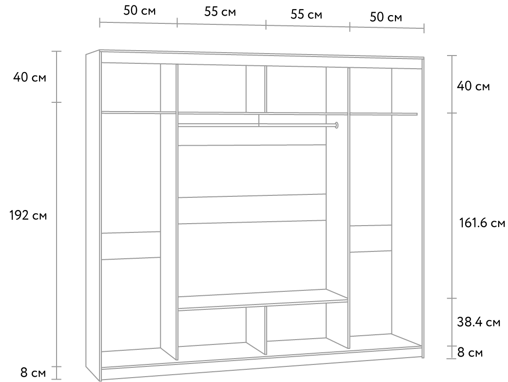 Шкаф очень вместительный, идеально вписался в интерьер. Качество на высоте.