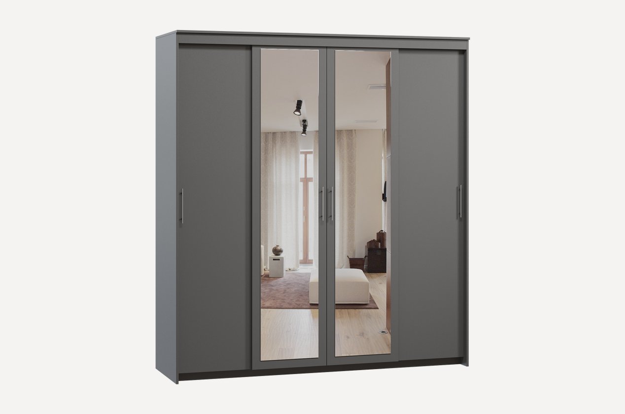 Четырехдверный шкаф «Тебар» – удобная система для упорядоченного хранения одежды. Благодаря солидным габаритам и повышенной вместимости, он без труда вместит гардероб большой семьи. В конструкции шкафа предусмотрены полки и штанги, а фасад украшает большое зеркало, в котором можно рассмотреть себя в полный рост. За дверцами вас ждет продуманное внутреннее наполнение. А наличие ленты-щетки предотвратит попадание пыли внутрь шкафа и обеспечит бесшумное открывание и закрывание створок (данный элемент в базовую комплектацию изделия не входит и приобретается отдельно).