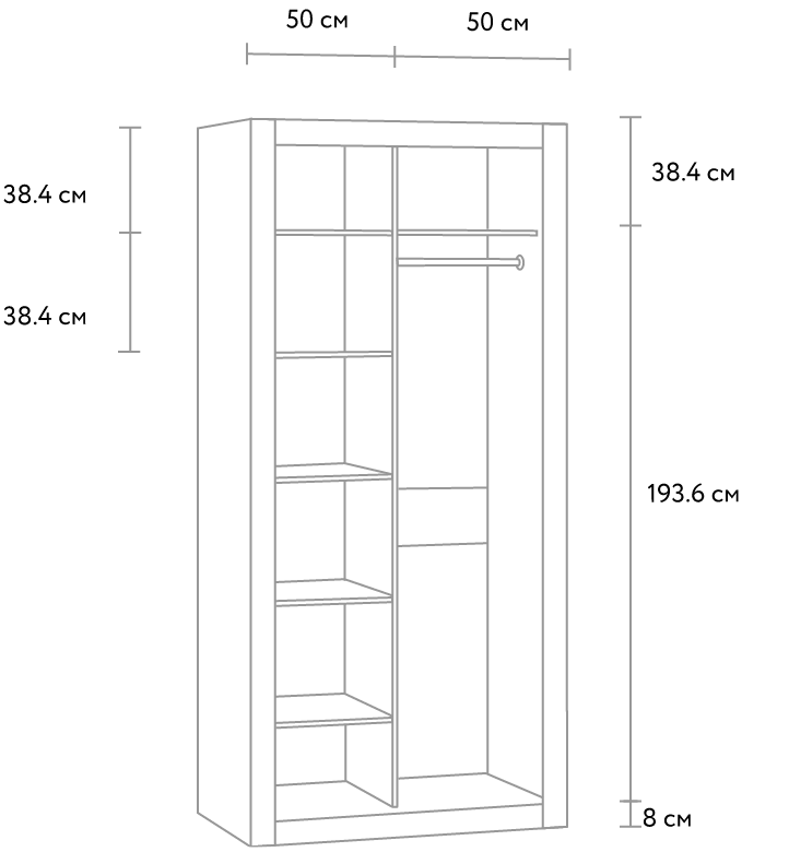 Компактный шкаф-купе «Винсент» систематизирует хранение в спальне, прихожей или гостиной. Раздвижные дверцы с врезными ручками не требуют пространства для открывания и закрывания, благодаря чему модель подойдет для комнат небольшой площади, узких коридоров и даже вытянутых по форме лоджий. За дверцами вас ждет продуманное внутреннее наполнение: глубокие полки и отдельный отсек со штангой для вешалок. Наличие ленты-щетки предотвратит попадание пыли внутрь шкафа и обеспечит бесшумное открывание и закрывание створок (данный элемент в базовую комплектацию изделия не входит и приобретается отдельно).