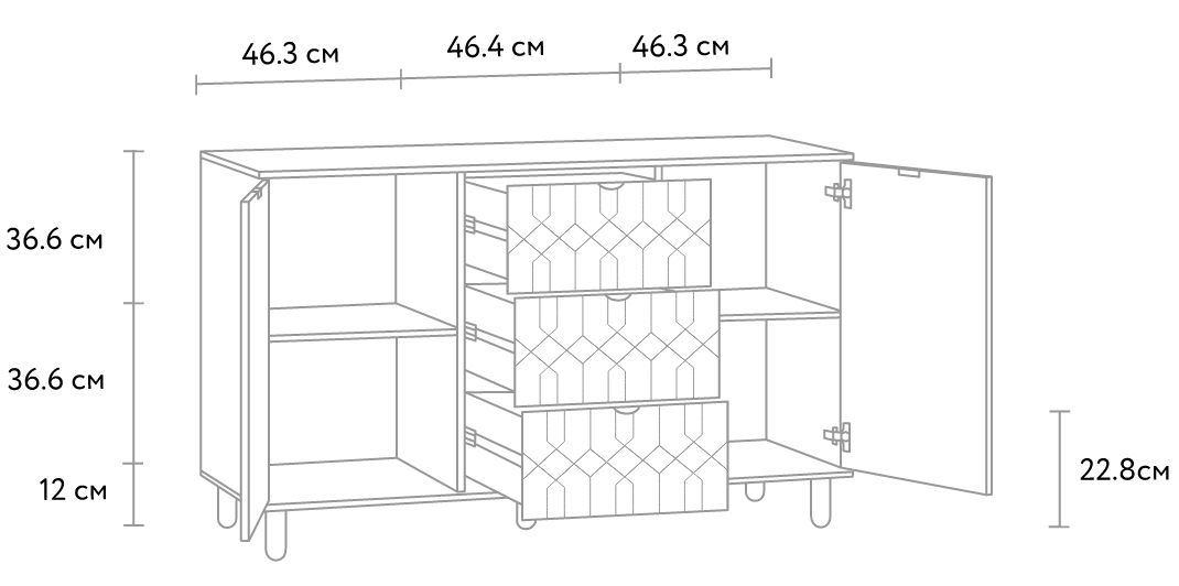 На дополнительных схемах указаны размеры полезного пространства системы хранения.