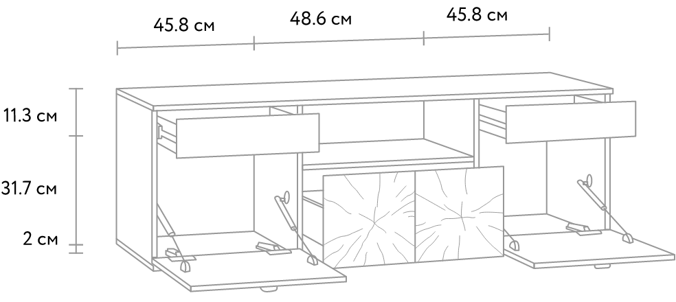 ТВ-тумба «Фиджи-1» – уютная модель для гостиной в стиле сканди, лофт или модерн. Изделие выделяется сочетанием глянцевых фасадов и вставок с имитацией дерева. Разъемы для техники, спрятанные в задней части тумбы, не нарушают целостность фасада. Компактная и эргономичная модель подойдет даже для самых небольших комнат.
