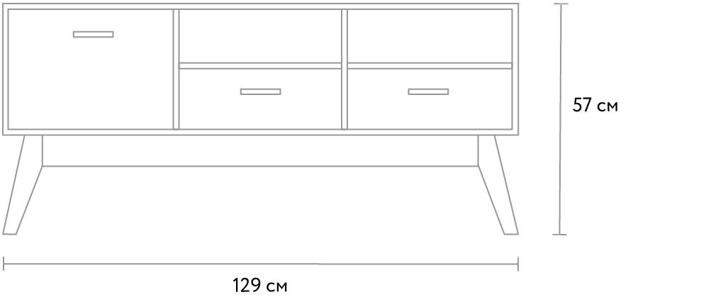 Конструкция тумбы «Нордик-1» включает отсек с распашной дверцей, два выдвижных ящика и два открытых отделения. На широкую столешницу вы сможете поставить телевизор любой диагонали, а также всю аудио- и видеотехнику.