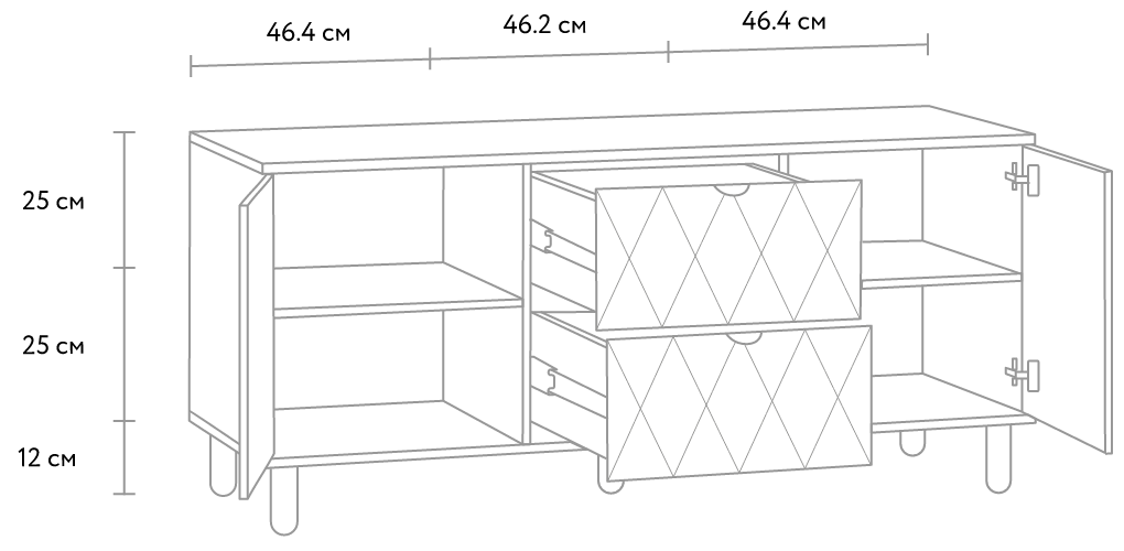 На дополнительных схемах указаны размеры полезного пространства системы хранения.