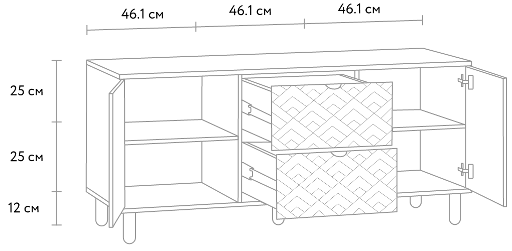 На дополнительных схемах указаны размеры полезного пространства системы хранения.
