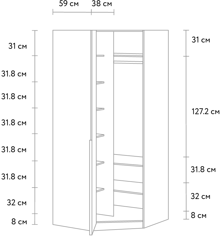 Угловой шкаф «Норд-2» со строгой геометрией и зеркальной створкой смотрится стильно и трендово в современных минималистичных интерьерах. Нестандартная форма и большое зеркало на дверце позволяют выгодно обыграть пространство, визуально расширяя его и наполняя комнату светом.