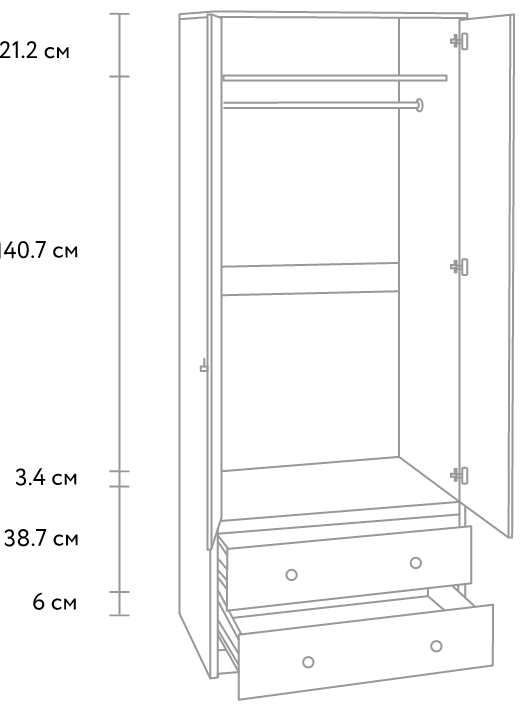 Коллекция «Дизель» сочетает в себе сильные стороны классического и современного стилей, делая акцент на практичность. Вместительный двустворчатый шкаф займет достойное место в интерьере гостиной, спальни. Изделие продуманной структуры впишется в комнату даже самых небольших габаритов.