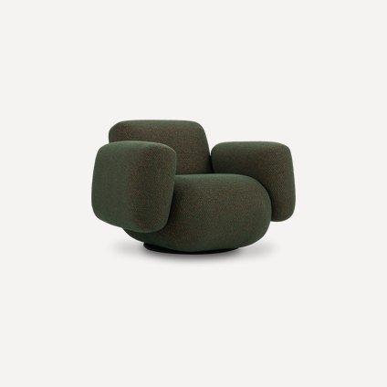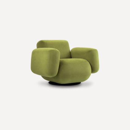 Уникальный дизайн, разработанный Димой Логиновым, сочетает плавные формы и тактильно приятные фактуры. За счет плотной велюровой ткани создается меланжевый эффект и спокойный матовый блеск, который подчеркивает округлые линии мебели.
