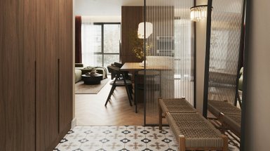 Обязательно предусмотрите место для ключей, документов, шапок, шарфов, перчаток и других аксессуаров. «Тайником» для мелких предметов может стать небольшая ваза, подвесной кофр или просто грамотно «обыгранный» поднос. Рекомендуем выделить место для зонтов и головных уборов. Обувную (и не только) косметику, документы, бумаги удобнее всего хранить в выдвижных ящиках на роликовых направляющих.